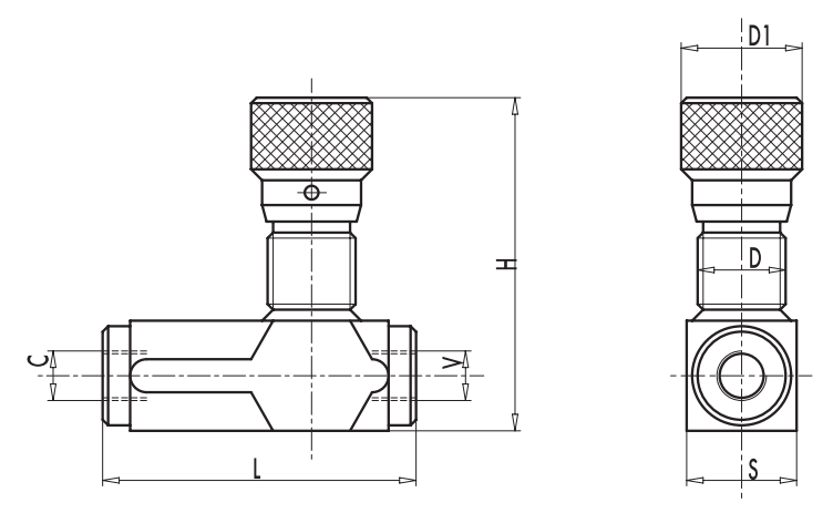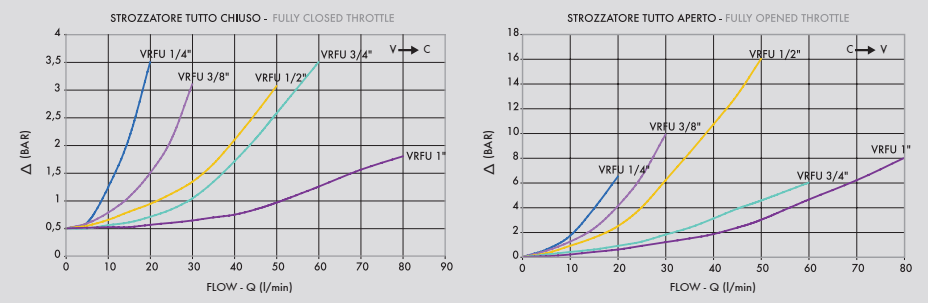 Подсоедините V к порту давления и C к к контролируемому порту. Поток регулируется от C до V и свободен в обратном направлении. При использовании на приводе с двусторонним гидрозамком необходимо установить VRFU90 между актуатором и гидрозамком.
