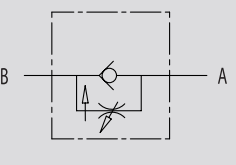 Подсоедините V к порту давления и C к к контролируемому порту. Поток регулируется от A к B и свободен в обратном направлении. Поток не зависит от давления и вязкости масла.