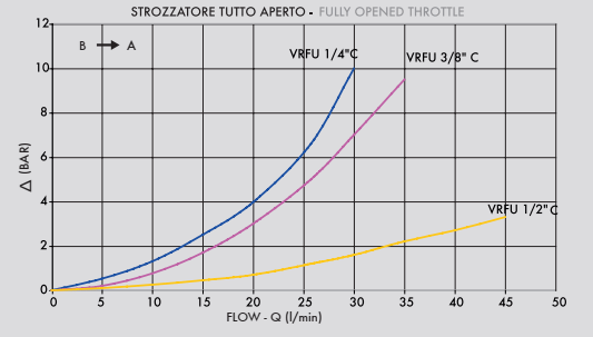 | КОД | ТИП | Макс. поток из A в В Lt. / min | Макс. поток из В в A Lt. / min | Давление макс., бар |