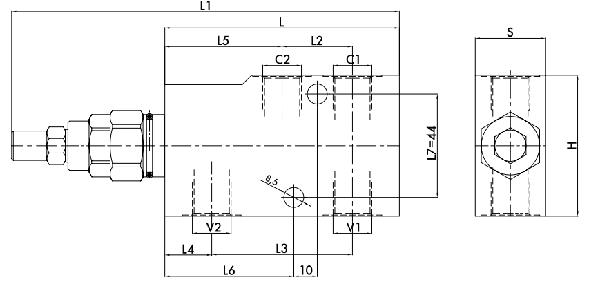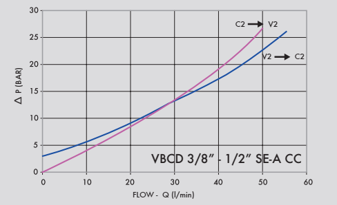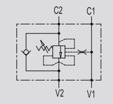 Соедините V1 и V2 c гидрораспределителем, С1 к порту свободного потока,и С2 к контролируемому порту гидроцилиндра.