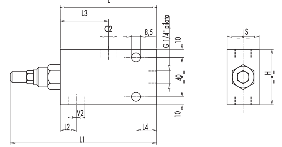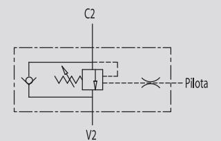 Соедините V2 c гидрораспределителем, С2 к гидроцилиндру Pilota - порт для управления.